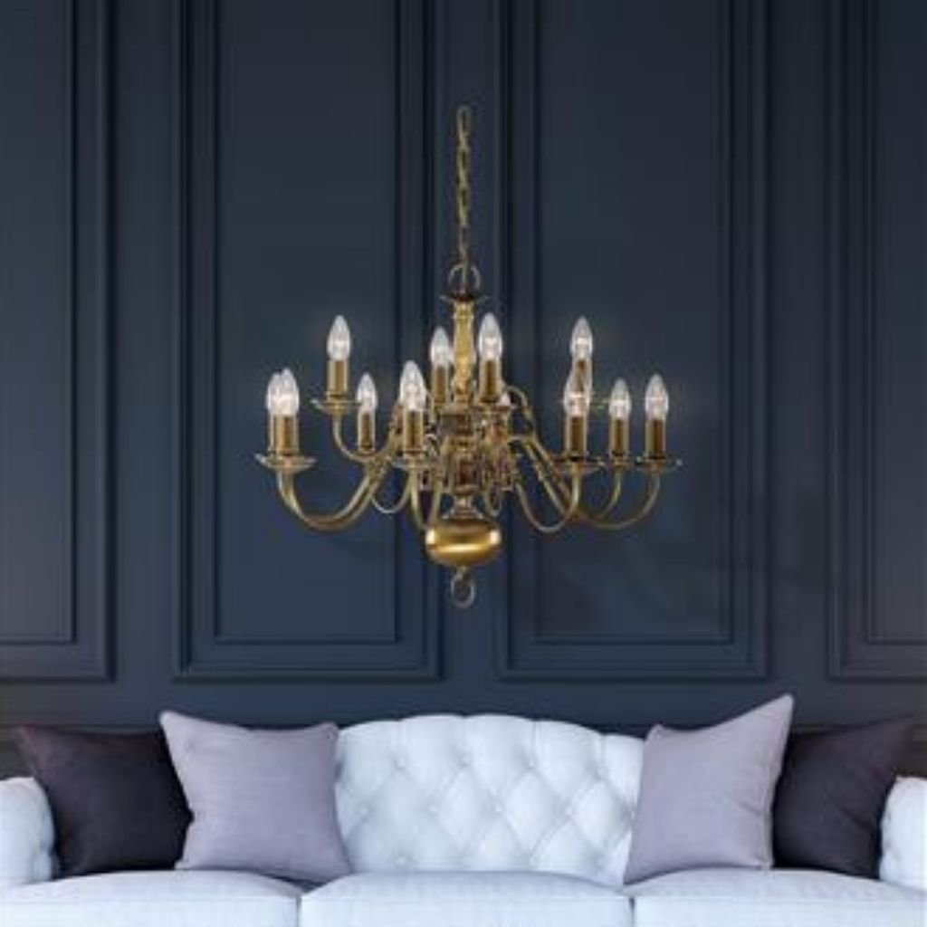 Flemish 12Lt je klasické závěsné svítidlo s dvanácti rameny, které vyniká svým elegantním a nadčasovým designem.