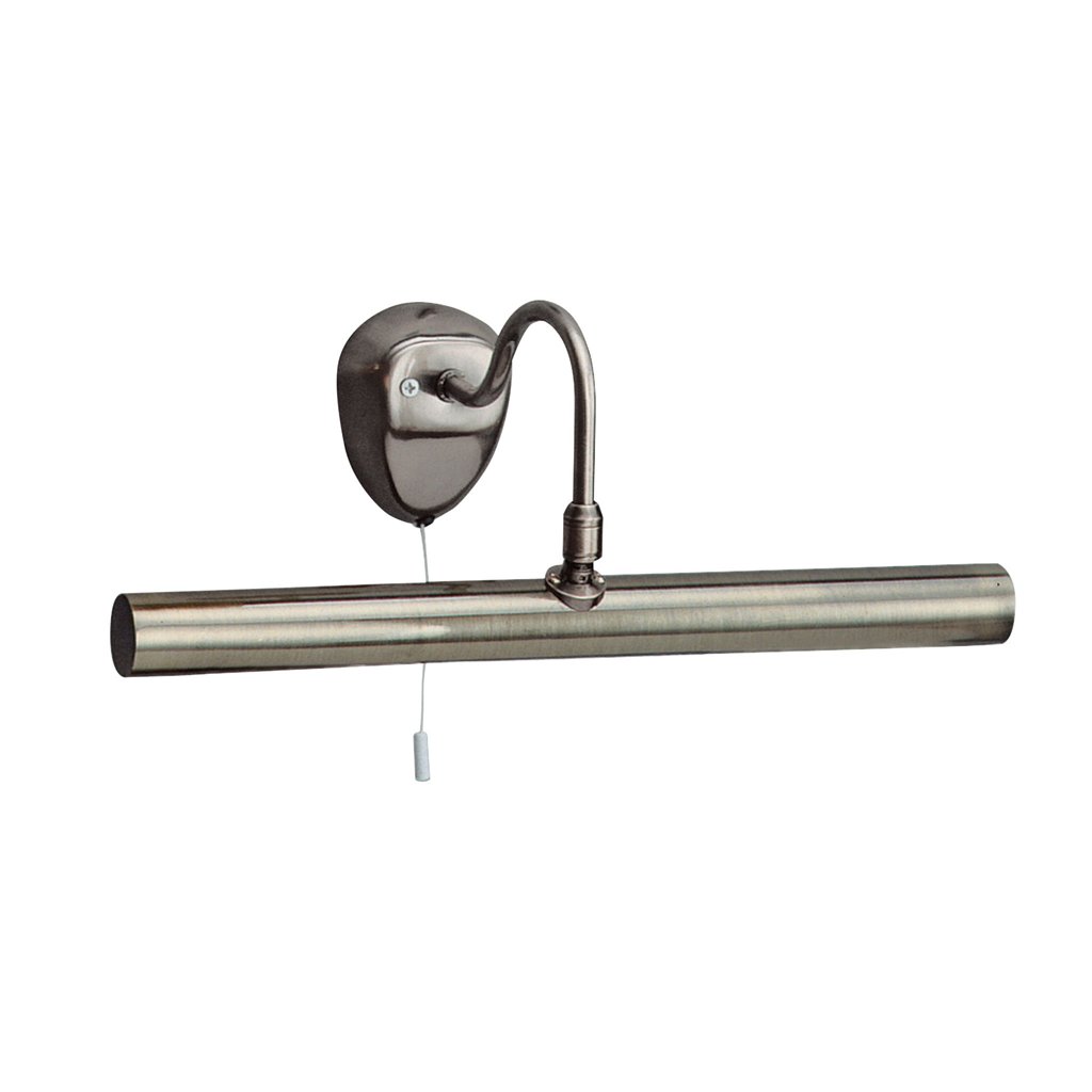 Obrazové nástěnné svítidlo z kovu v povrchové úpravě antik mosaz. Od stěny 15cm, výška 13cm a délka 36cm. Vypínač je šňůrkový. Patice pro světelné zdroje E14 velikost malinká kulička s označením také Pygmy. Příkon max. 2x60W. Žárovky balení neobsahuje. Vyberte žárovku typu LED.