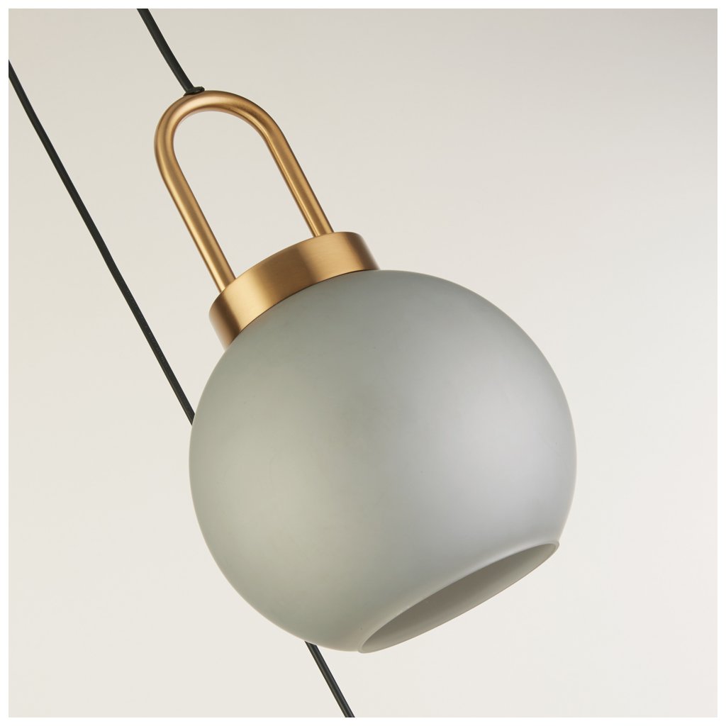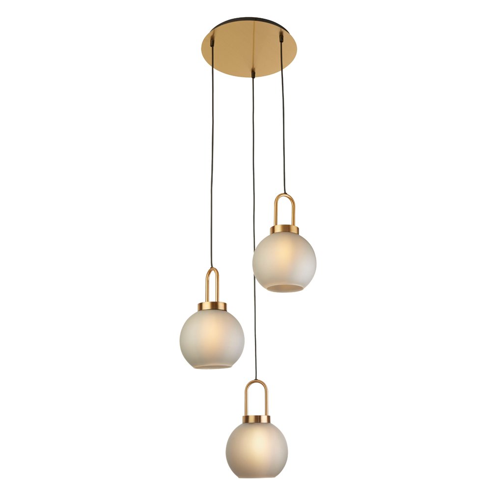 Závěsné svítidlo z kovu povrchová úprava bronz. Svítidlo má kouličky leptané kyselinou. Od stropu výška 156cm, průměr 46cm. Svítidlo se připojuje na centrální vypínač. Patice pro světelný zdroj E27 na max. 3x60W. Rozeta na zavěšení má průměr 42cm. Žárovky balení neobsahuje. Vyberte žárovku typu LED.