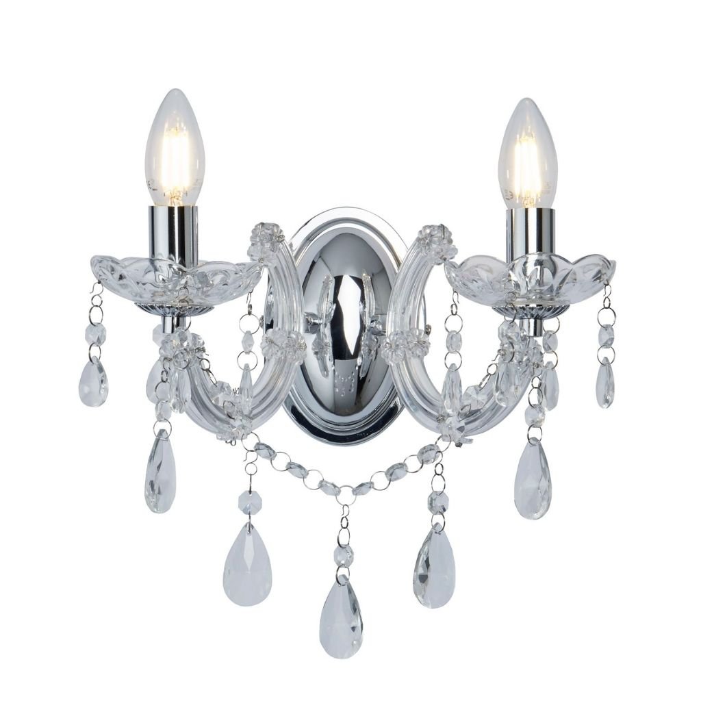 Searchlight nástěnné svítidlo barva chrom, povrchová úprava leštění, použitý materiál je měkká ocel, akryl a sklo. Rozměry v cm: celková výška: 32, výška: 15,5, šířka: 32, délka: 0, projekce: 20. Světelný zdroj objímka E14, potřeba žárovek 2, světelný zdroj není v balení, doporučený typ žárovky od výrobce je svíčka na max. 60W.