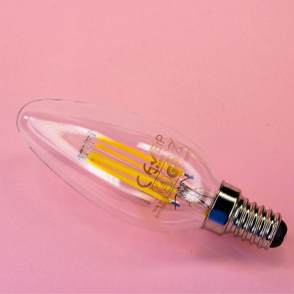 Žárovka čirá skleněná ve tvaru svíčky CRI 80Ra patice E14. Má životnost cca 15tis hodin. Příkon 4W, stmívatelný není. Teplota chromatičnosti je 2700K a světelný tok 470lm
