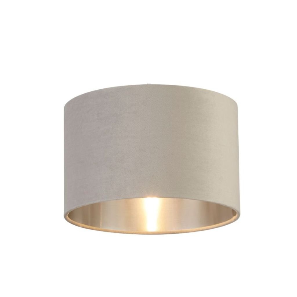 Stínidlo v luxusním provedení šedého sametu a stříbrné folie uvnitř. Průměr je 38cm. Stínidlo je pro zavěšení na E27 patici. Je to samostatné stínidlo, lze jej použít na zavěšení, pro stolní nebo stojací lampu...