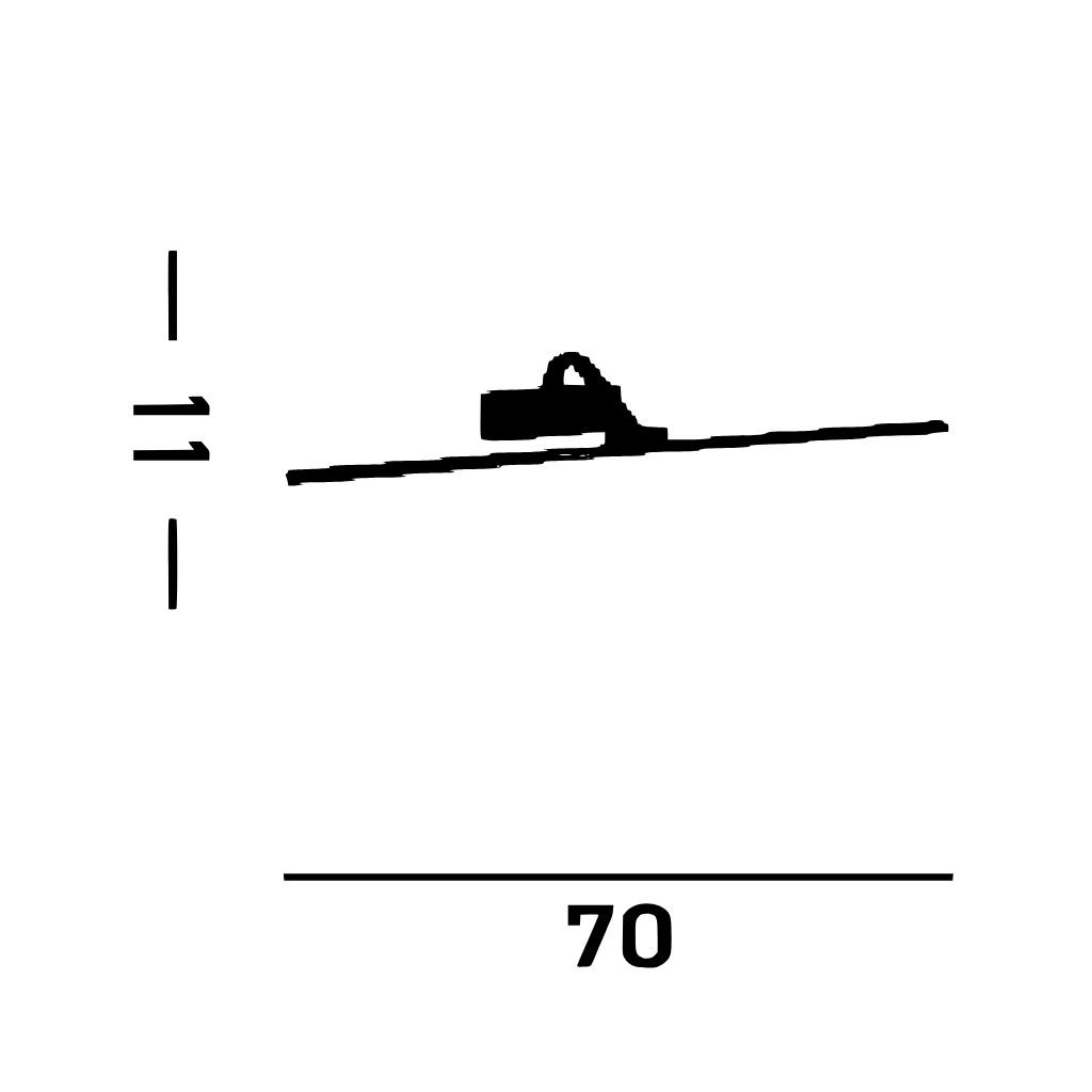 Obrazové nástěnné svítidlo kovové povrchová úprava mosaz. Stínidlo je z kovu. Výška 11 cm, délka 70 cm. Svítidlo má svůj kolébkový vypínač na montuře. Patice pro světelný zdroj LED na max. 1 × 16W. Barva světla je 3000K svítivost 1642 lumenů. Integrovaný LED zdroj.