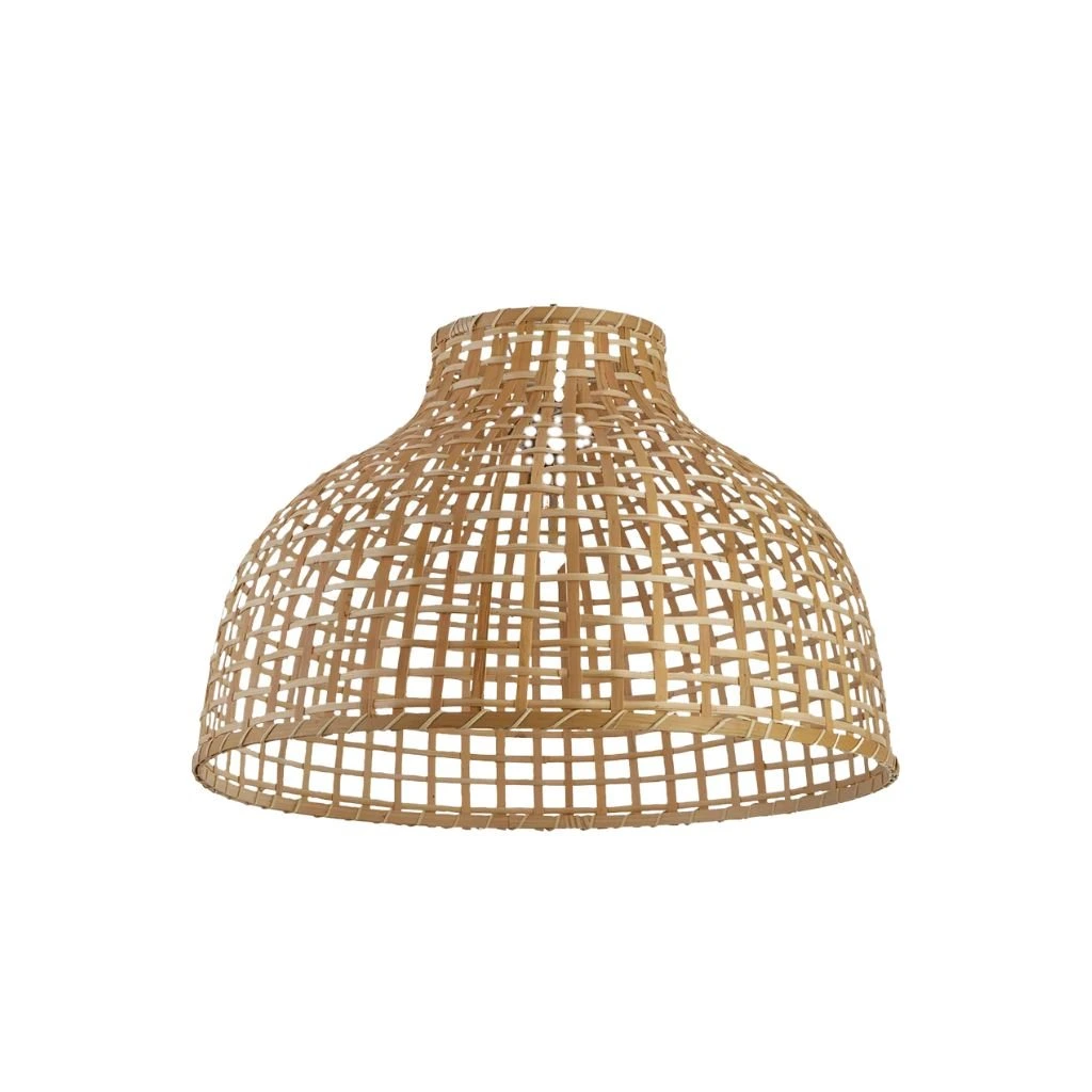 Stínidlo z bambusu vyplétané ručně, tvar ve spodní části otevřený. Průměr je 52 cm a výška 35 cm. Stínidlo je pro zavěšení na E27 patici. Je to samostatné stínidlo, lze jej použít na zavěšení.