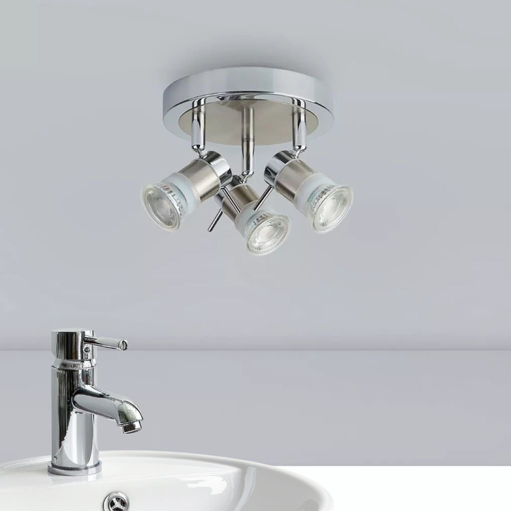 Kruh s bodovkami z kovu povrchová úprava chrom lesklý i matný. Svítidlo má krytí IP44. Od stropu výška 13 cm, průměr kruhu 18 cm. Svítidlo se připojuje na centrální vypínač.
