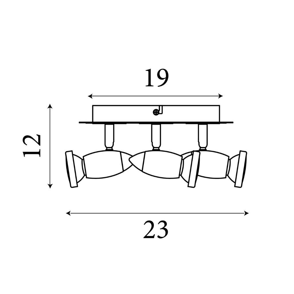 Bodovkový čtverec má základnu z kovu v provedení lesklý chrom a černé dřevo. Délka je 23 cm a šířka 23 cm, od stropu 12 cm. Patice pro světelné zdroje GU10 na max. 4 × 50 W. Žárovky balení neobsahuje. Vyberte žárovku typu LED.