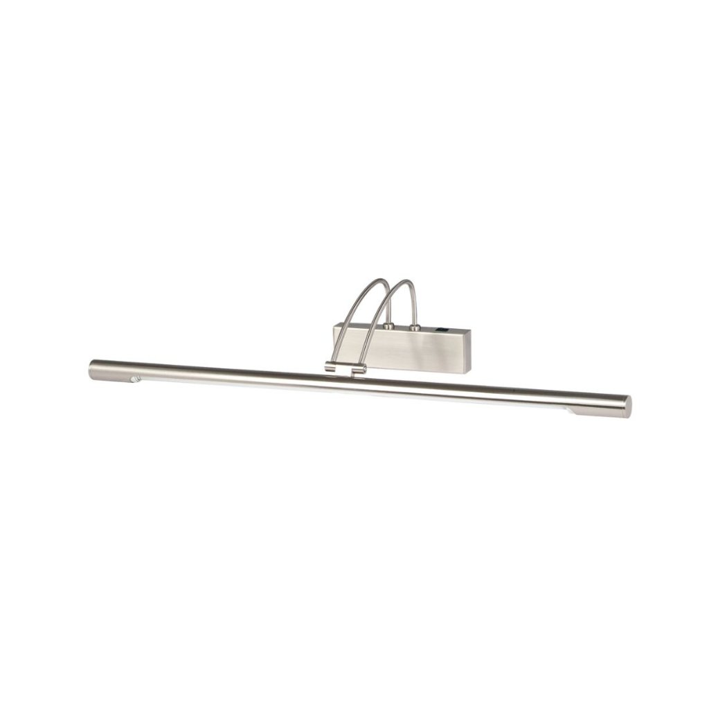Nástěnné svítidlo pro osvětlení obrazů. Toto je v matném chromu. Na stěnu se instaluje základna s kolébkovým vypínačem v horní části, předpokládá se, že toto svítidlo bude na zdi výš než obraz, tak aby nebyl vidět. Ta dvě ramínka, co pak drží samotné světelné těleso jsou nepohyblivá, hýbe se až tou světelnou částí nahoru nebo dolů. Obrazové svítidlo na stěnu z kovu v matném chromu. Šířka 68cm a výška 12cm. Patice pro zdroj T5 max. 1x14W. Zářivka v balení není.