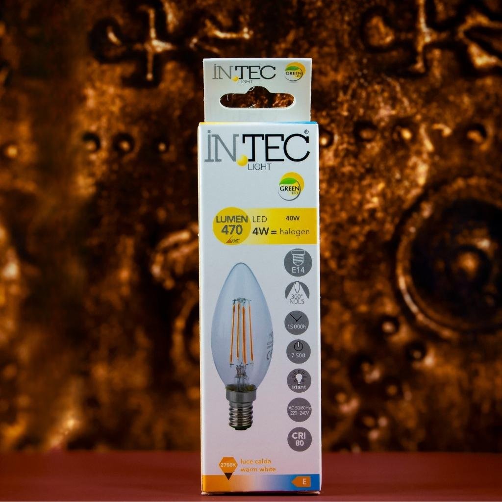 Žárovka čirá skleněná ve tvaru svíčky CRI 80Ra patice E14. Má životnost cca 15tis hodin. Příkon 4W, stmívatelný není. Teplota chromatičnosti je 2700K a světelný tok 470lm