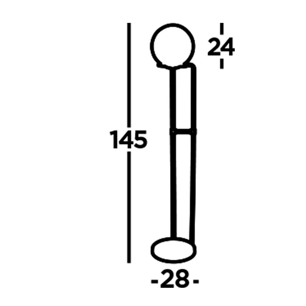 Stojací lampa kov antická mosaz a stínidlo koule bílé barvy. Výška je 145 cm a průměr 28 cm. Vypínač je na kabelu nášlapný. Patice pro světelný zdroj E27 na max. 1 × 60W. Žárovky balení neobsahuje. Vyberte žárovku typu LED.