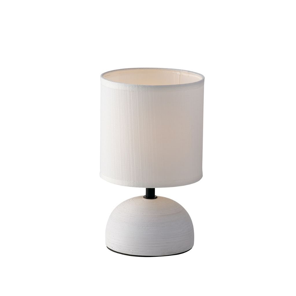 Lampička na noční stolek, malá. Noha je keramická. Stínidlo je válec z textilu bílé barvy. Patice pro žárovku je E14 na max. 1x40W. Výška lampičky je 24cm a průměr stínidla 14cm. Vypínač najdete na kabelu. Žárovky balení neobsahuje. Vyberte žárovku LED ve tvaru malé kuličky.