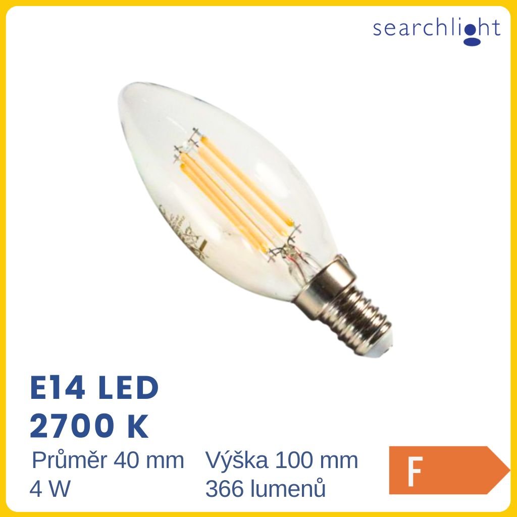 LED žárovka do patice E14 celoskleněná - 4 W příkon 2700K a 366 lumenů.