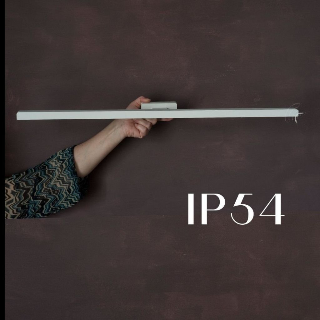 Svítidlo nad zrcadlo s opravdu pěkným zpracováním. Je to jednoduchá linie dlouhá 75cm. Základna má opracovaný kraj, pěkně zaoblený, tím to vyřazuje z kategorie obyčejných a levných svítidel. Ve spodní části lišty je difusor z polykarbonátu a pod ním je LED pás, co svítí příjemným teplým bílým světlem. Svítidlo se může 10tisíckrát zapnout a vypnout. Pro úplný náběh na 100% výkonu bude potřebovat menší časový úsek.